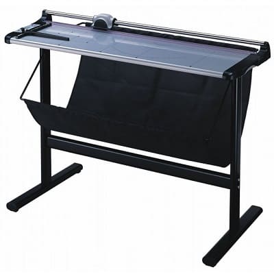Металлическая станина в комплекте, состоит из двух боковых ножек и перекладины скрепляющей их посередине. Крепится она к резаку с помощью специальных, болтовых соединений. Имеется полукруглый, открытый короб для сбора обработанной полиграфии. На рабочем поле резака присутствует удобная разметка для форматов (от А6 до А0), а также разлиновка (по вертикали и горизонтали) в дюймах и миллиметрах.