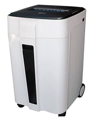 Стоит отметить присутствие индикаторов открытой двери и заполненной корзины, автоматических функций старт/стопа, авто реверса. Параметр шума 55 дБ является показателем тихой работы, что особенно актуально при мощности 530 Вт. Скорость резки составляет 55 мм/сек, ширина загрузки 240 мм. Отдельных слов заслуживает большая выдвижная корзина, заполненность которой контролируется с помощью специального окошка.