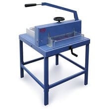 Гильотинный резак – оборудование, с помощью которого можно легко обработать большой полиграфический тираж. Для удобства работы и получения качественного реза их устанавливают на специальный стол-подставку (статину). В ассортименте представлены ручные и электрические гильотины. В старших моделях присутствует подсветка линии реза и электронное управление упором для бумаги (затлом), а также электромеханический привод ножа.
